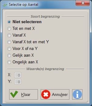 Tot en met X U selecteert alle objecten waarvoor de waarde van dit kenmerk kleiner of gelijk is aan X.