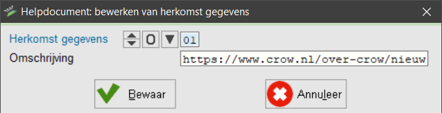 Let op! Om herkomst gegevens goed te gebruiken, moet eerst de keuzelijst Herkomst gegevens worden gevuld met opties in GB Centraal. Vervolgens kan met vomgeving bestanden Herkomst gegevens worden aangemaakt. Als laatste moet de gedeelde keuzelijst geïmporteerd worden. Zie Importeer gedeelde keuzelijsten en Herkomst gegevens voor meer informatie.
