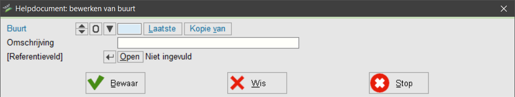 Het kenmerktype '"referentieveld" bestaat uit een invoerveld en de knop "open". In het referentieveld kunt u een verwijzing naar een locatie op een lokale harde schijf, een netwerkschijf of zelfs een internetadres invoegen. Wanneer u een groot aantal grote foto's of bestanden wilt toevoegen, kan het dus ook aan te raden zijn een referentieveld te gebruiken in plaats van een document/pdf of foto/afbeelding. Als u op de knop "open" drukt, zal de bestandslocatie openen in Windows Verkenner. Als u een internetadres heeft opgegeven, zal deze nieuwe webpagina openen in uw standaardbrowser.