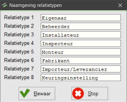 Bij Relatietypen onder Vormgeving bestanden kunt u de naamgeving van de relatietypen aanpassen.